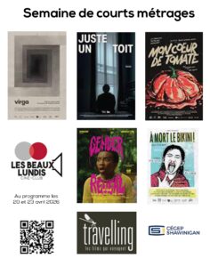 Le plaisir du bon cinéma! Le plaisir du bon cinéma! Le plaisir du bon cinéma! À l’affiche prochainement Télécharger dépliant ici Résurrection 16 et 19 mars Un jeune homme rêveur se réincarne dans cinq époques. Tandis que le XXe siècle défile, une femme suit sa trace… La petite dernière 23 et 26 mars Fatima, 17 ans, s’émancipe de sa famille et de son quartier pour vivre librement sa sexualité qu’elle assume à peine. Mais cette vie trouvée, en totale opposition avec son passé, la fera se questionner sur […] Les échos du passé 30 mars et 2 avril Quatre filles de quatre décennies différentes grandissent ensemble dans une ferme et semblent être liées les unes aux autres. À travers tes yeux 6 et 9 avril Dans l’optique de comprendre d’où elle vient, Fabiola a posé une question qui est devenue la phrase centrale du film : qu’est-ce qu’aurait été ma vie si j’étais restée en Haïti? En prenant comme point […] Voir la programmation complète